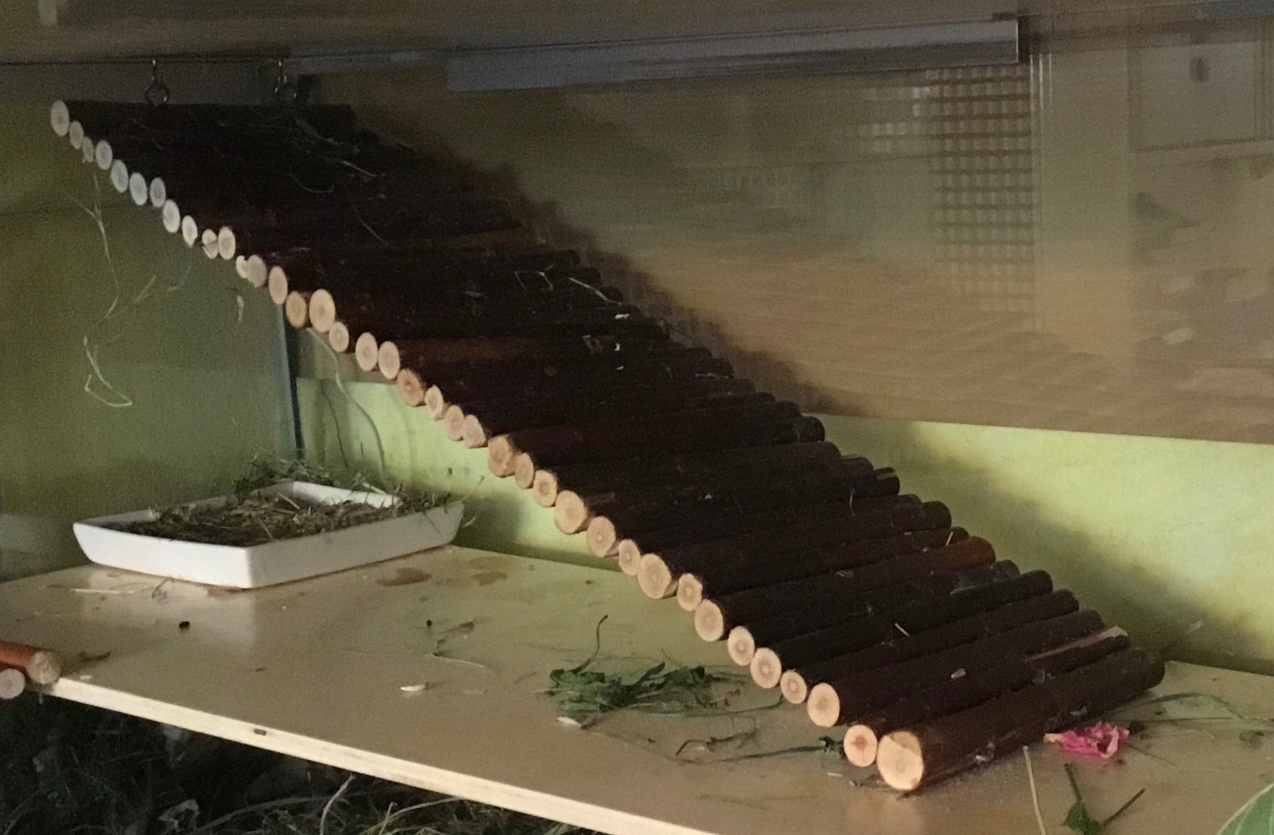 Die Mädels hatten die Holzstücke allerdings auch zum Fressen gern, weswegen das eine oder andere Mal ein Neubau anstand...