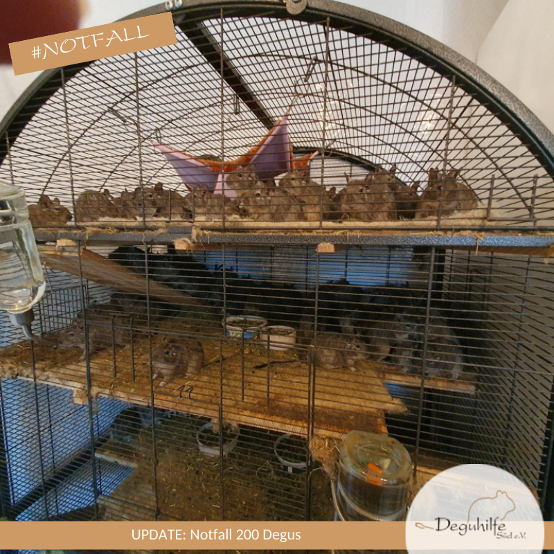 Für die 96 Degus, die wir zunächst bei der Halterin zurücklassen mussten, liefen weiterhin die Drähte heiß, es wurde telefoniert, Mails geschrieben und auch der Deutsche Tierschutzbund unterstützte uns mit einem Aufruf an alle Mitgliedsvereine.