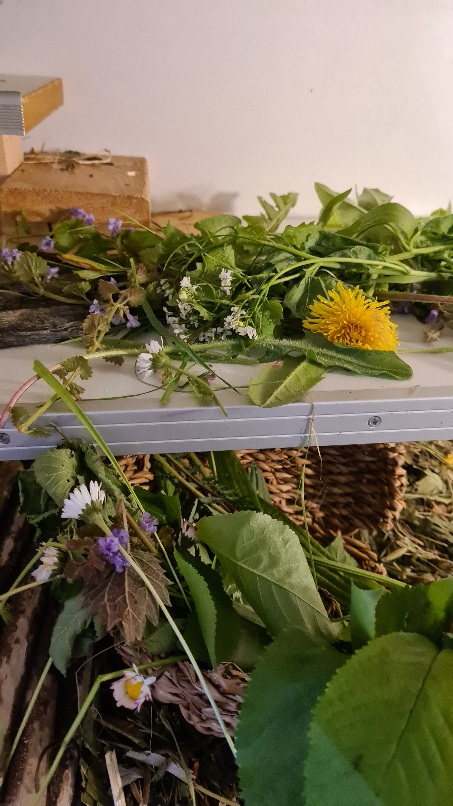 Ich trockne im großen Stil Brennessel, auch Löwi und Spitzwegerich. Wird gerne gegessen, und wenn der Sommer trocken wird, habe ich was da, der Rest kommt von Hansemann