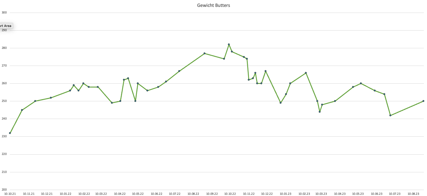 Und das ist wirklich spannend zu sehen, wie sich das Gewicht mit der Zeit immer mal wieder ändert.
