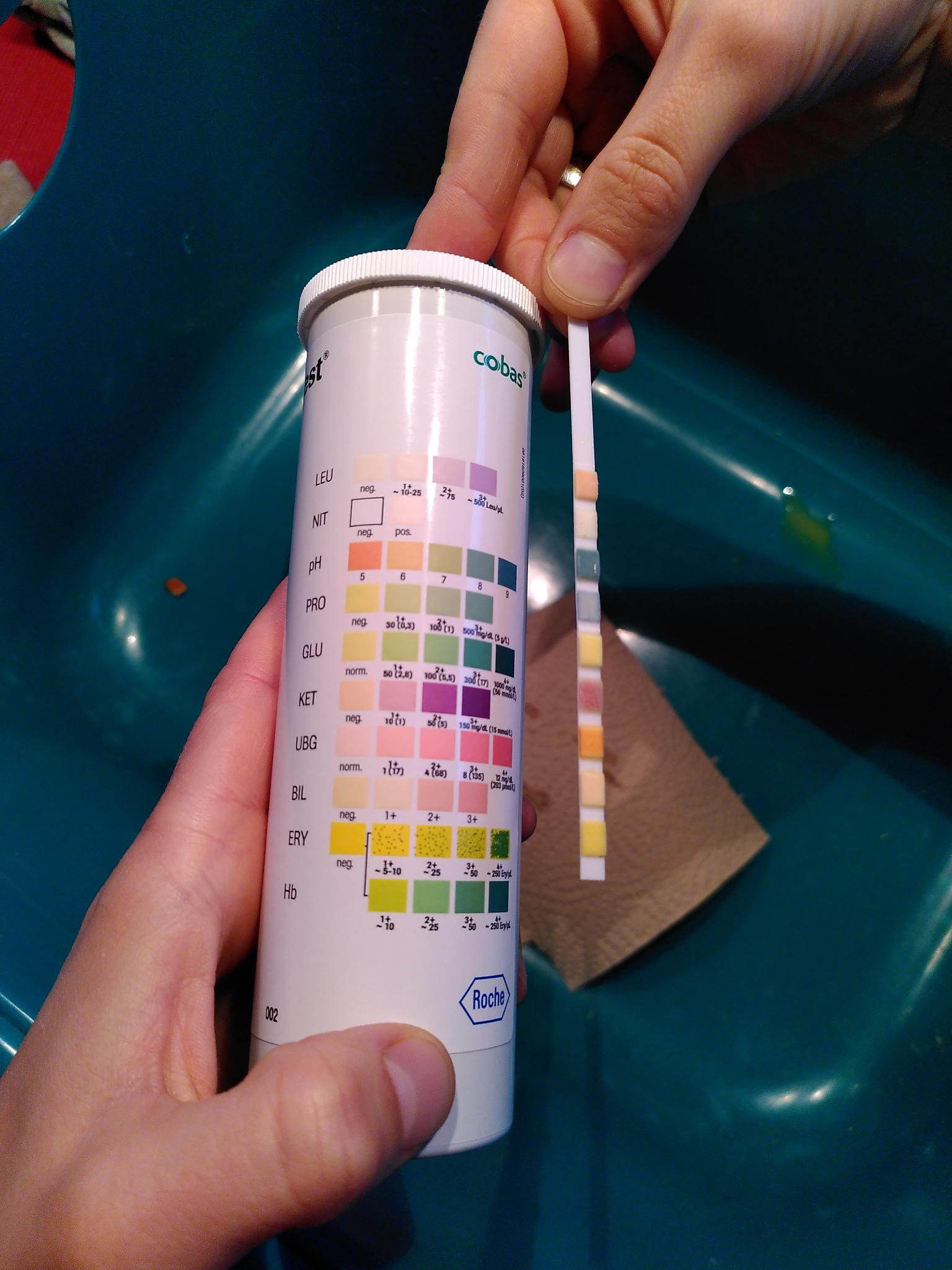 Komisch finde ich, dass bei den Leukozyten und UBG die Farbe so ganz anders ist..