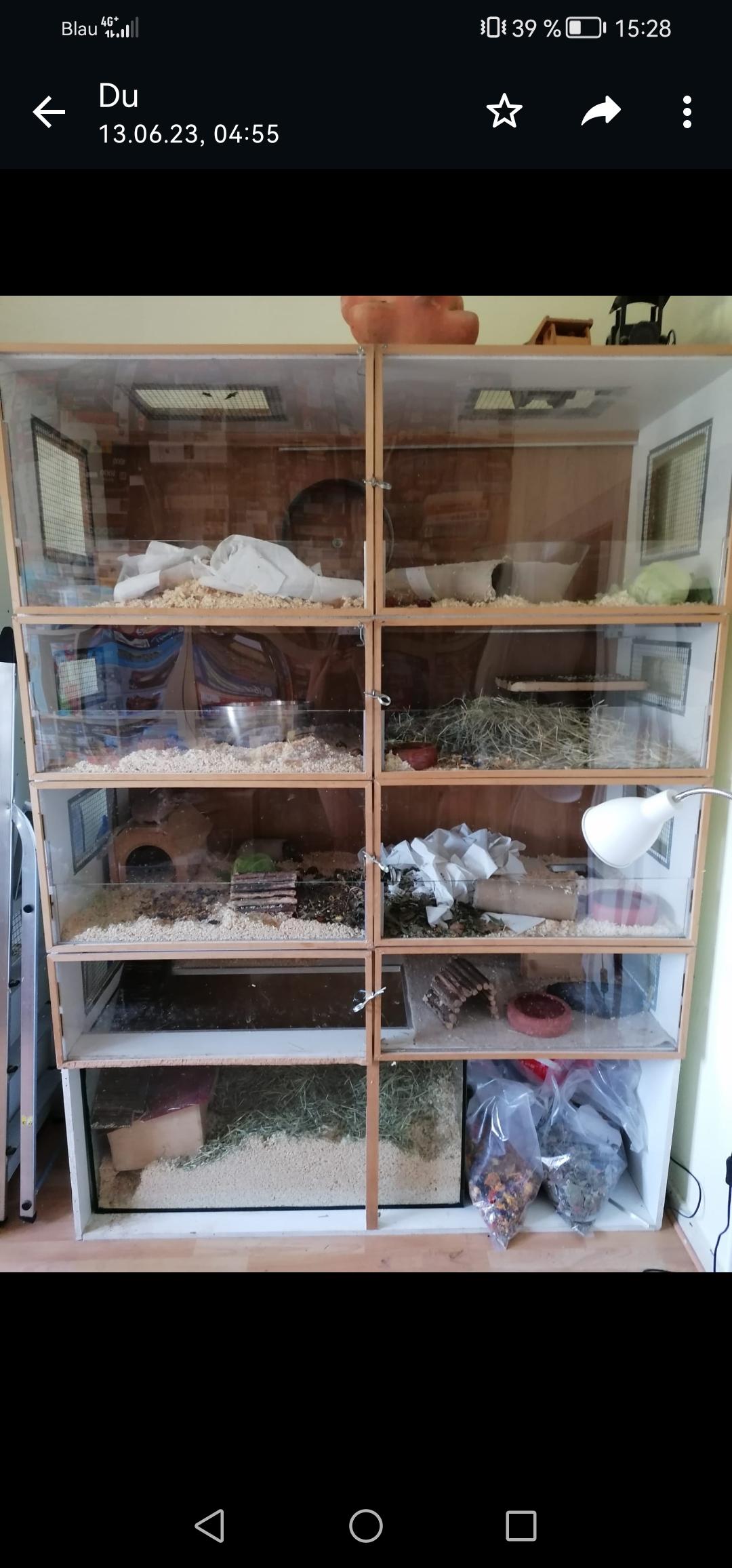 Wir werden jetzt nochmal ganz in Ruhe scheuen, inwieweit wir mit diesem Becken als Grundlage ein tolles Zuhause für Degus bieten können.