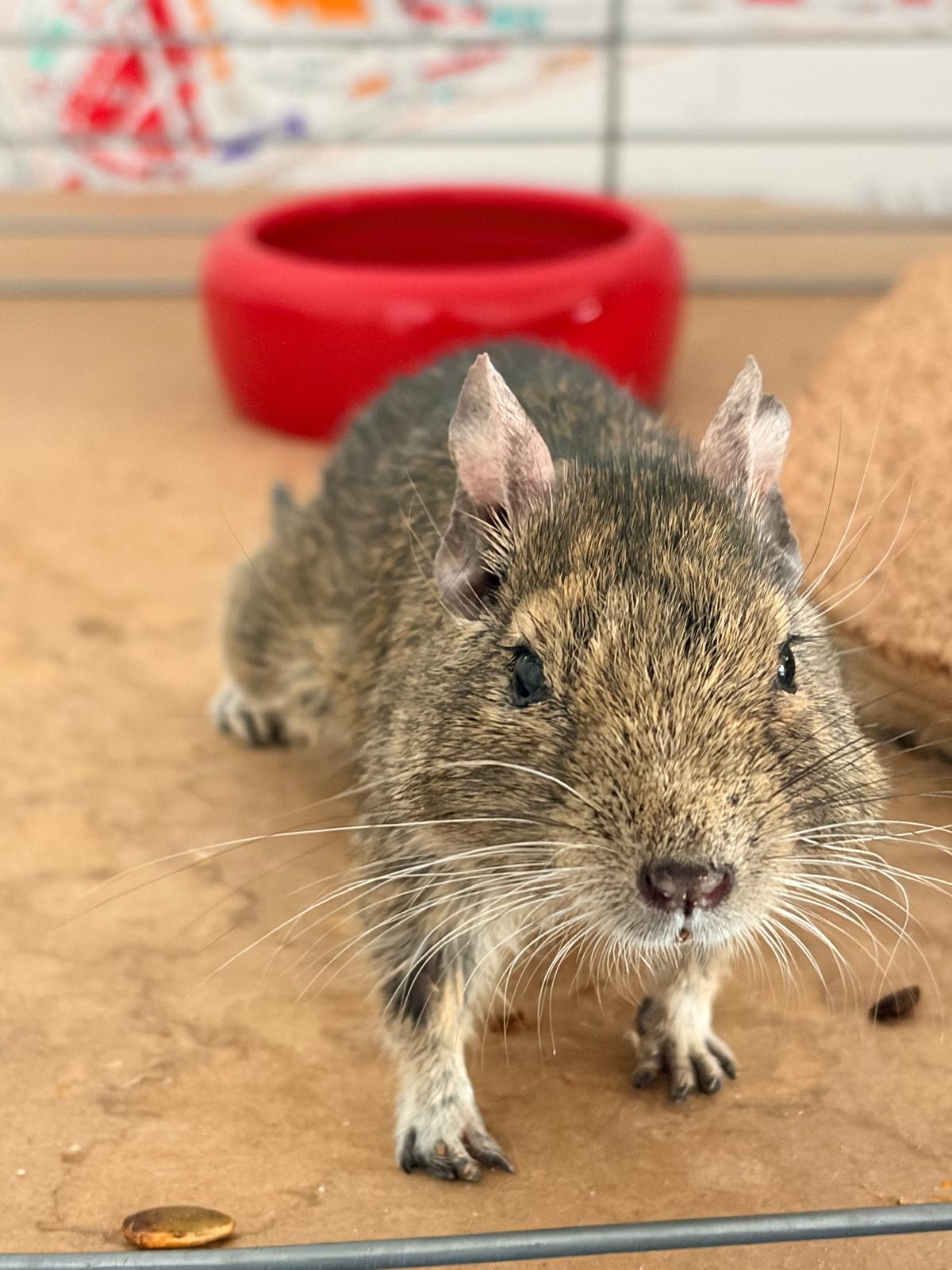 ich bin ein männlicher Degu (nicht kastriert), aktuell ca. 8 Jahre alt und suche ein neues Zuhause. 5 Jahre lang habe ich mit meinen Brüdern zusammengelebt. Als sie dann verstorben waren, wurde ich zu Lenny (ebenfalls ein älterer Herr, der seinen Kumpel verloren hatte) vermittelt. 3 Jahre waren wir glücklich. Doch dann starb Lenny. Danach wurde ich zu Alvin, ein 6 Jahre altes Männchen vermittelt. Das hat super geklappt mit der Vergesellschaftung. 2 Monate lebten wir glücklich zusammen. Nun ist Alvin heute Morgen verstorben. Ich habe mich ganz rührend um ihn gekümmert und bin bis zur letzten Minute nicht von seiner Seite gewichen.