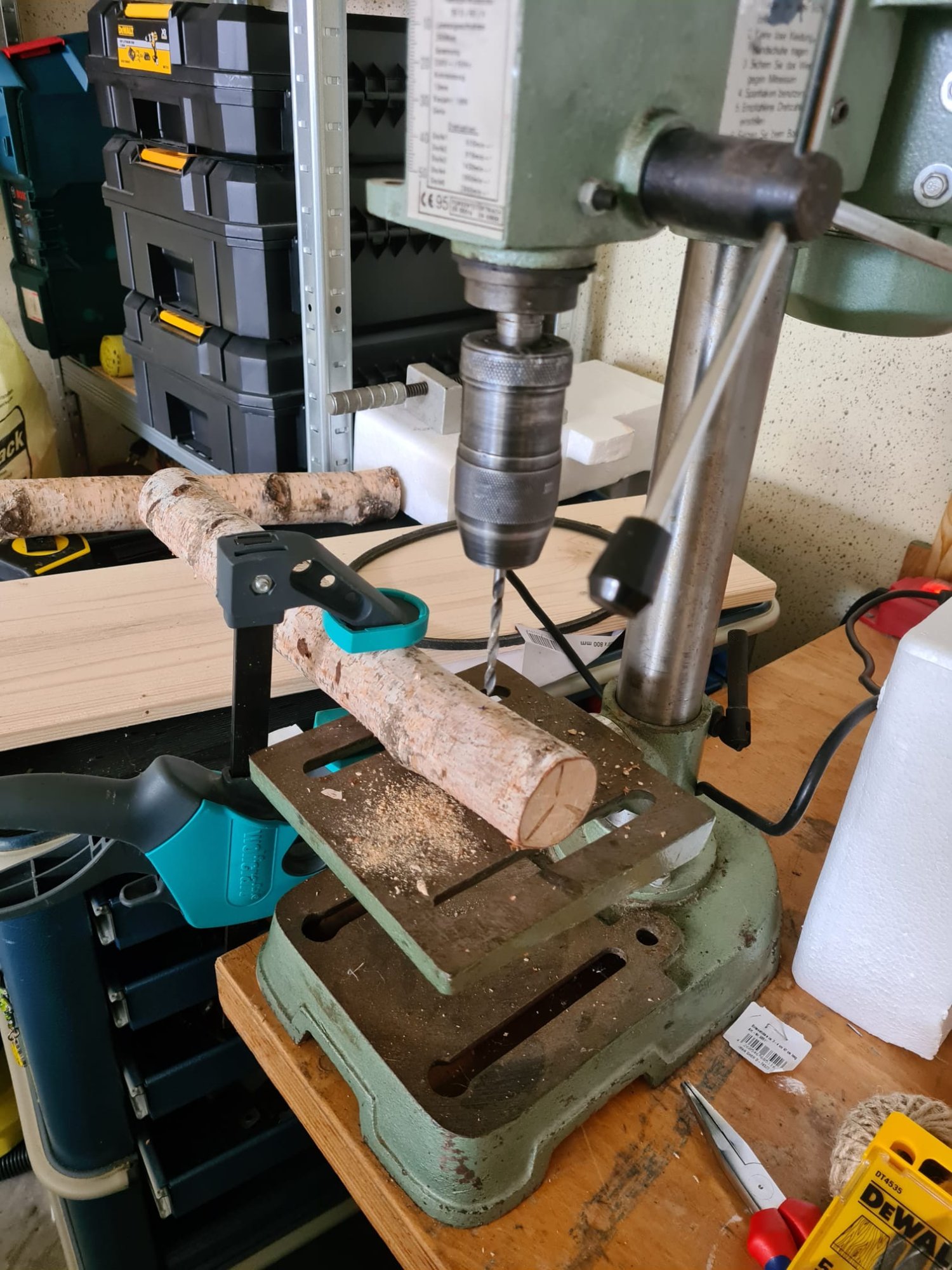 Durch die Äste habe ich zuvor ein Loch gebohrt, durch welches ich eine Schnur gefädelt habe. (Hab ich schon erwähnt, wie sehr ich meine Standbohrmaschine liebe? *heart* ) - (nein, ich möchte nicht über Arbeitssicherheit reden :lol: )