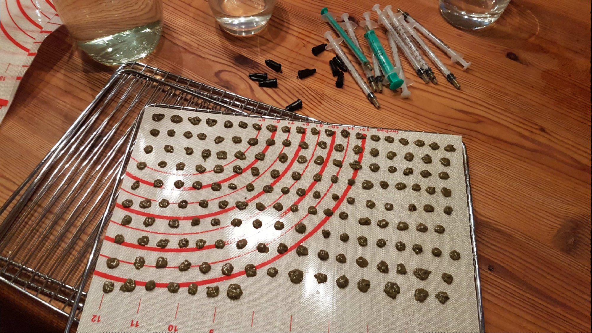 Da wir gerade Päppeln und der Schattenkönig nur ganz frischen Päppelbrei nehmen mag, habe ich die Reste portioniert und in unseren Dörrautomaten gelegt.
