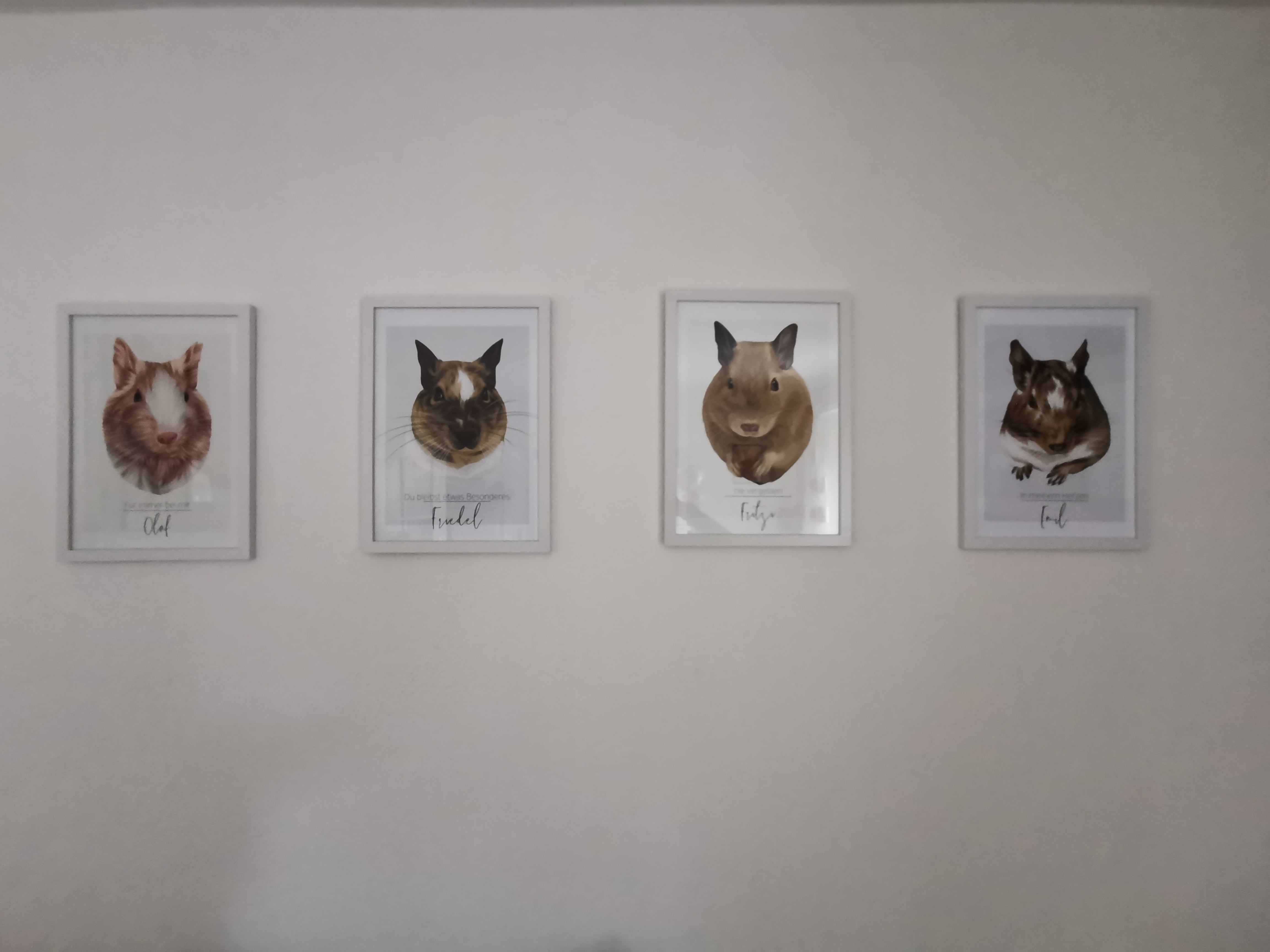 Meine 4 Kleinen liegen bei meinen Eltern im Garten bzw. hinter einem Gartenhäuschen. Dort liegen auch schon unsere zwei Familienkatzen. Ich habe das Glück dass dort sehr viel Platz ist und sie auf ein Feld bzw. einen Wald blicken. Wir haben noch Platten darauf gelegt, falls doch mal ein Fuchs kommt und versucht zu buddeln. Da meine Eltern aber ca. eine Stunde weg von mir wohnen habe ich bei mir Zuhause eine kleine Degu-Erinnerungswand geschaffen. *heart*