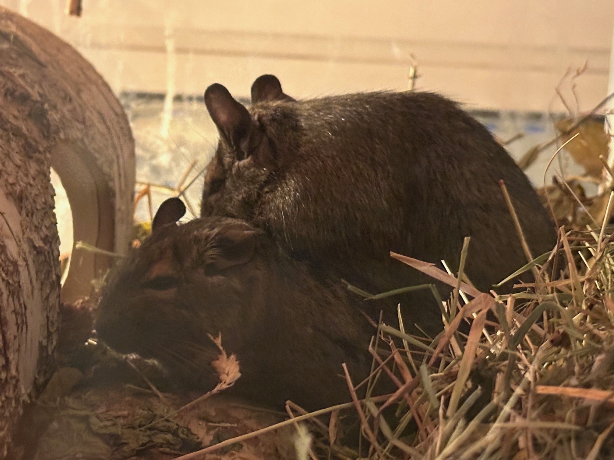 - Der entspannte Degu aus der Zweier Gruppe und das Einzelmädel haben heute am Trenngitter gezwitschert, das habe ich in der Form noch nicht erlebt.