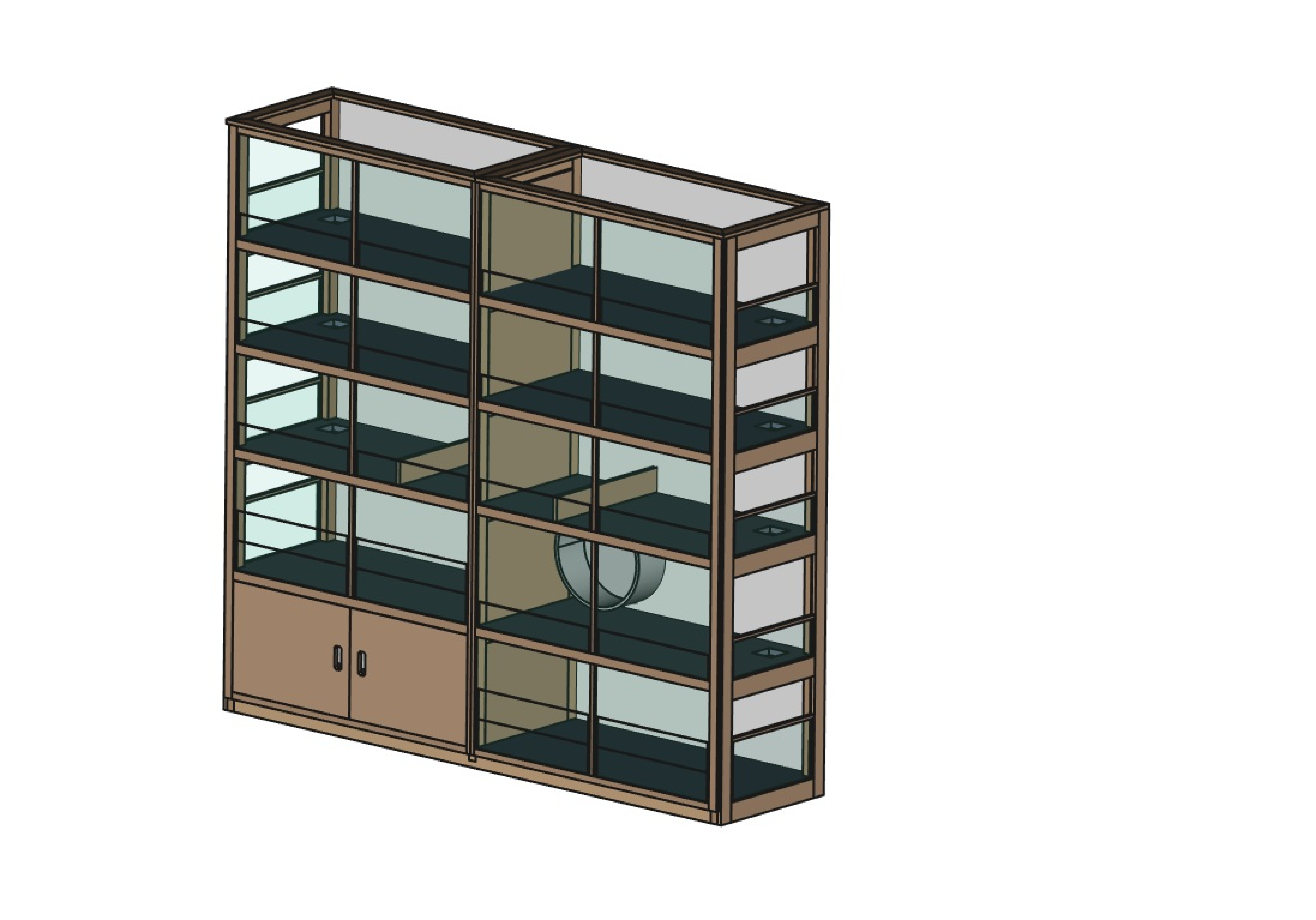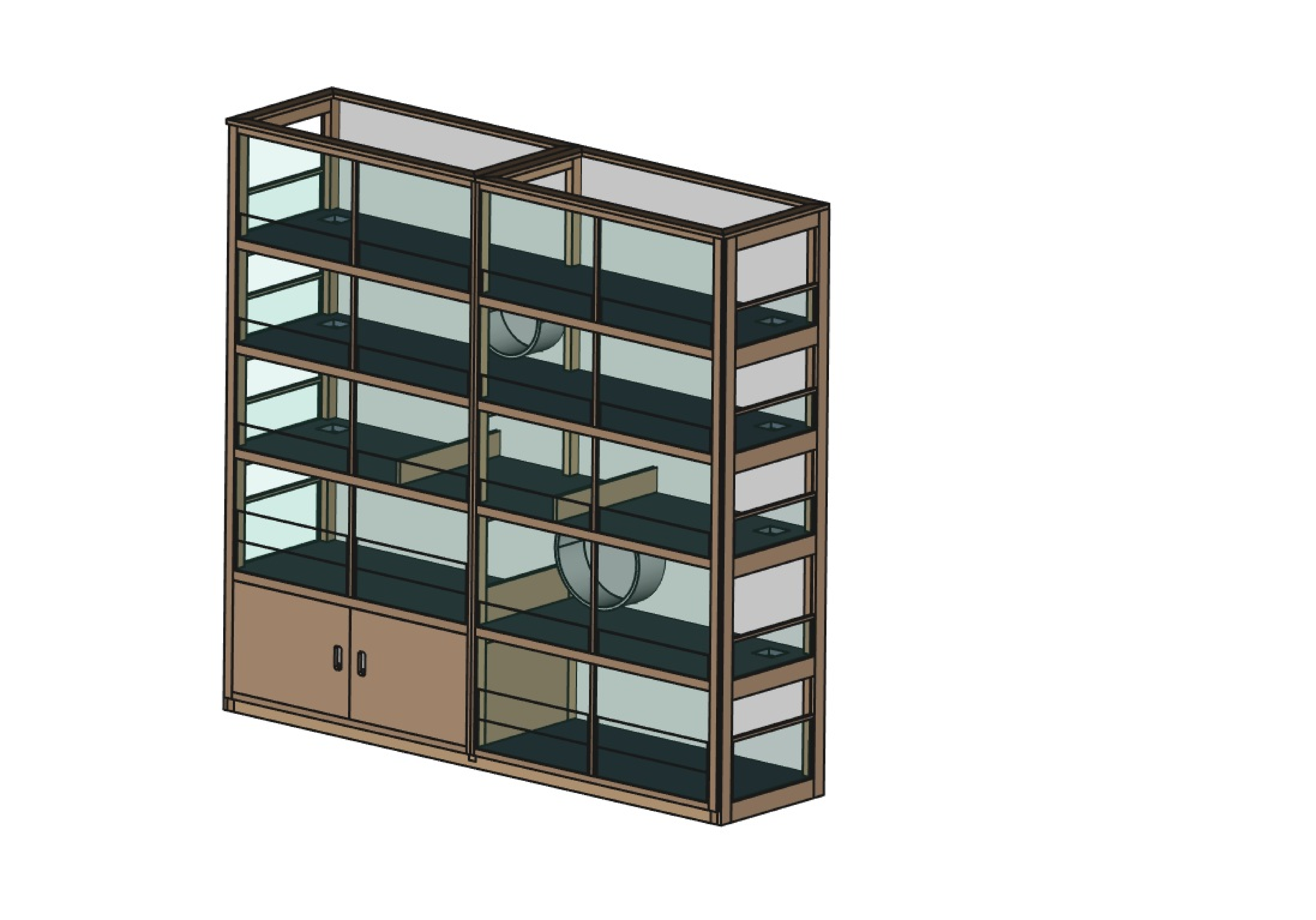 wir bauen ein neues Deguheim für unsere Rasselbande. Meine digitale Skizze ist fast fertig. Es fehlt hauptsächlich noch der Frontrahmen mit Streuschutz und Türen.