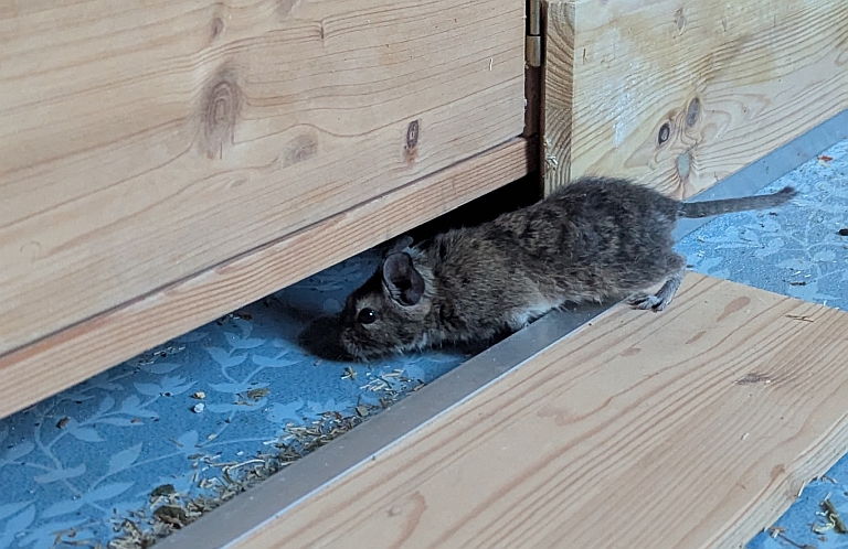 Da bin ich gespannt, wie beim Degu getestet wird, ob er taub ist. Das muss dann ja auf einer Oberfläche sein, die das Testgeräusch nicht spürbar überträgt.
