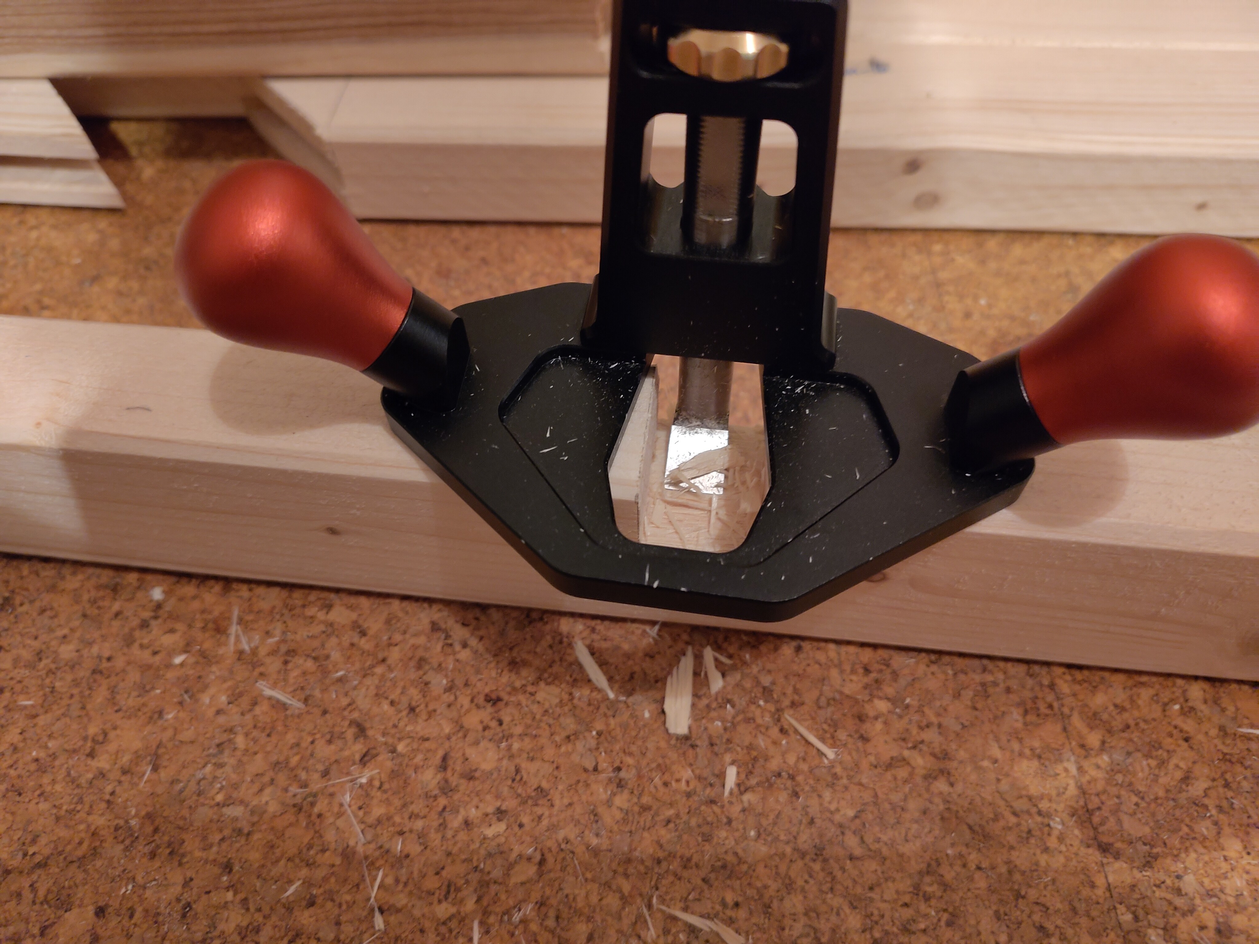 Sehr hilfreich war beim Ausarbeiten jedoch der kleine Grundhobel, welchen ich mir gegönnt habe. Ebenfalls fertig ist nun einer von zwei Deckelrahmen. Da dieser nichts halten muss, habe ich die Latten einfach mit der Kappsäge auf Gehrung geschnitten und dann verleimt. Später wird dann noch Volierendraht drauf gedackert.
