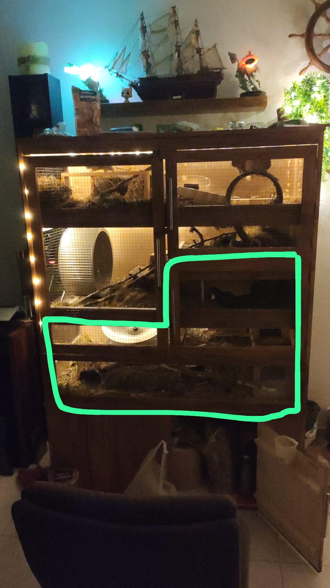 Darf ich nach den Maßen des Käfigs fragen?Klena hat geschrieben: 6. Nov 2022, 18:11 So als Nachtrag: so sieht gerade der Käfig aus. Der grüne Teil gehört Benni
