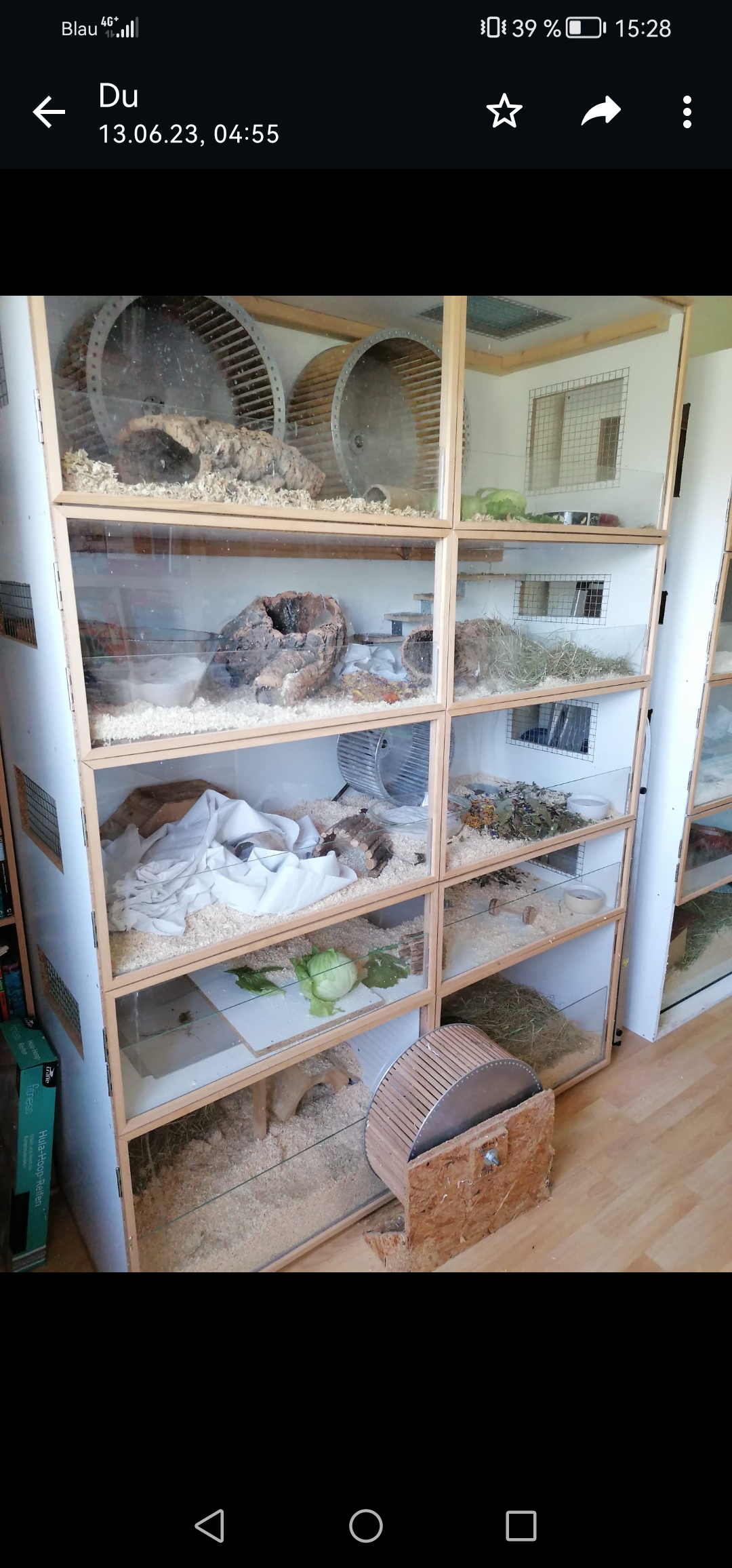 Deswegen kommt für uns eigentlich nur in Frage, das Becken als Grundlage zu nutzen und darauf einen Käfig in der nötigen Höhe zu bauen. Damit sollen die Tiere auf der Grundfläche, die wir bieten können, artgerecht untergebracht sein. Wir hatten beispielsweise auch Chinchillas - da wir dann aber noch größer bauen müssten, haben wir das ziemlich schnell wieder verworfen.