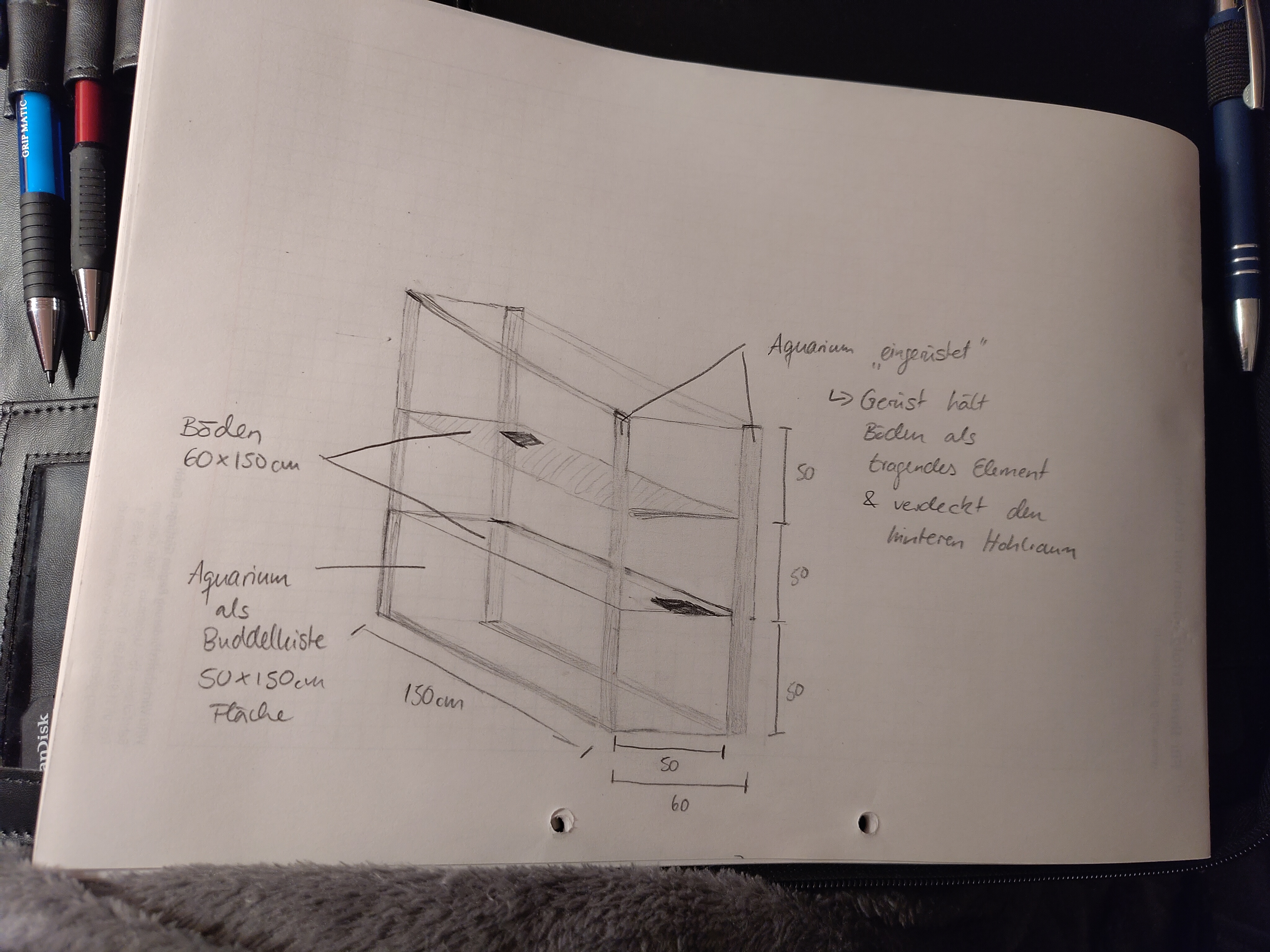 Es war ja natürlich auch nie der Plan, das Becken bei 150 x 50 zu belassen und darin drei Degus zu halten. Dass müsst in jedem Fall ordentlich in die Höhe wachsen, um zum einen genug Etagen unterzubringen und zum anderen aber auch die Belüftung im Becken Selbst nicht außer acht zu lassen. Das Becken war echt günstig, weil gebraucht erstanden - aber eben auch nicht wirklich leicht vom Gewicht her und geradeerst letztes Jahr angeschafft. Daher wollten wir das nicht gleich wieder versuchen, loszuwerden. Im Augenblick steht auch ein anderes Aquarium im Keller, für das sich auch niemand interessiert - und das ist ein komplettes Set, mit dem man sofort loslegen kann.
