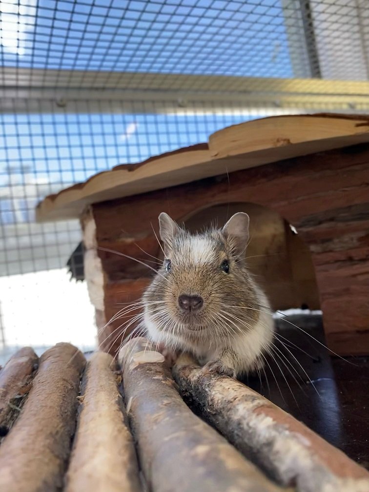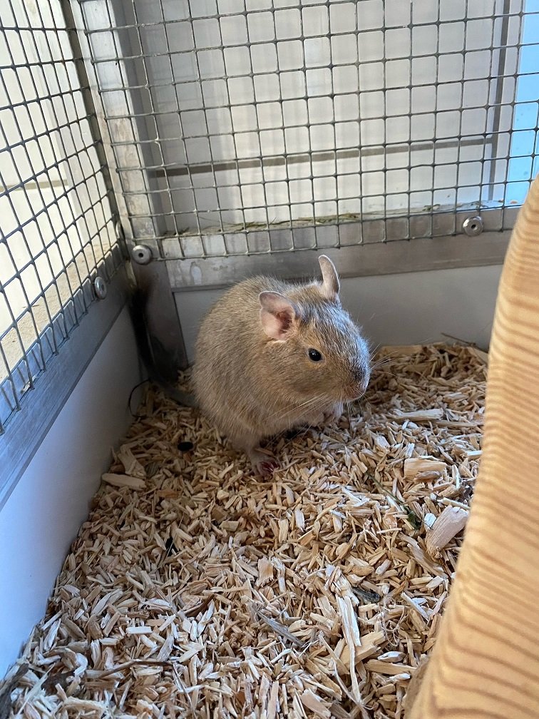 !!!) war, sollte die Kleine möglichst in eine harmonische Gruppe von ca. 3jährigen vermittelt werden, damit sie ankommen und noch was vom Leben als Degu lernen kann.