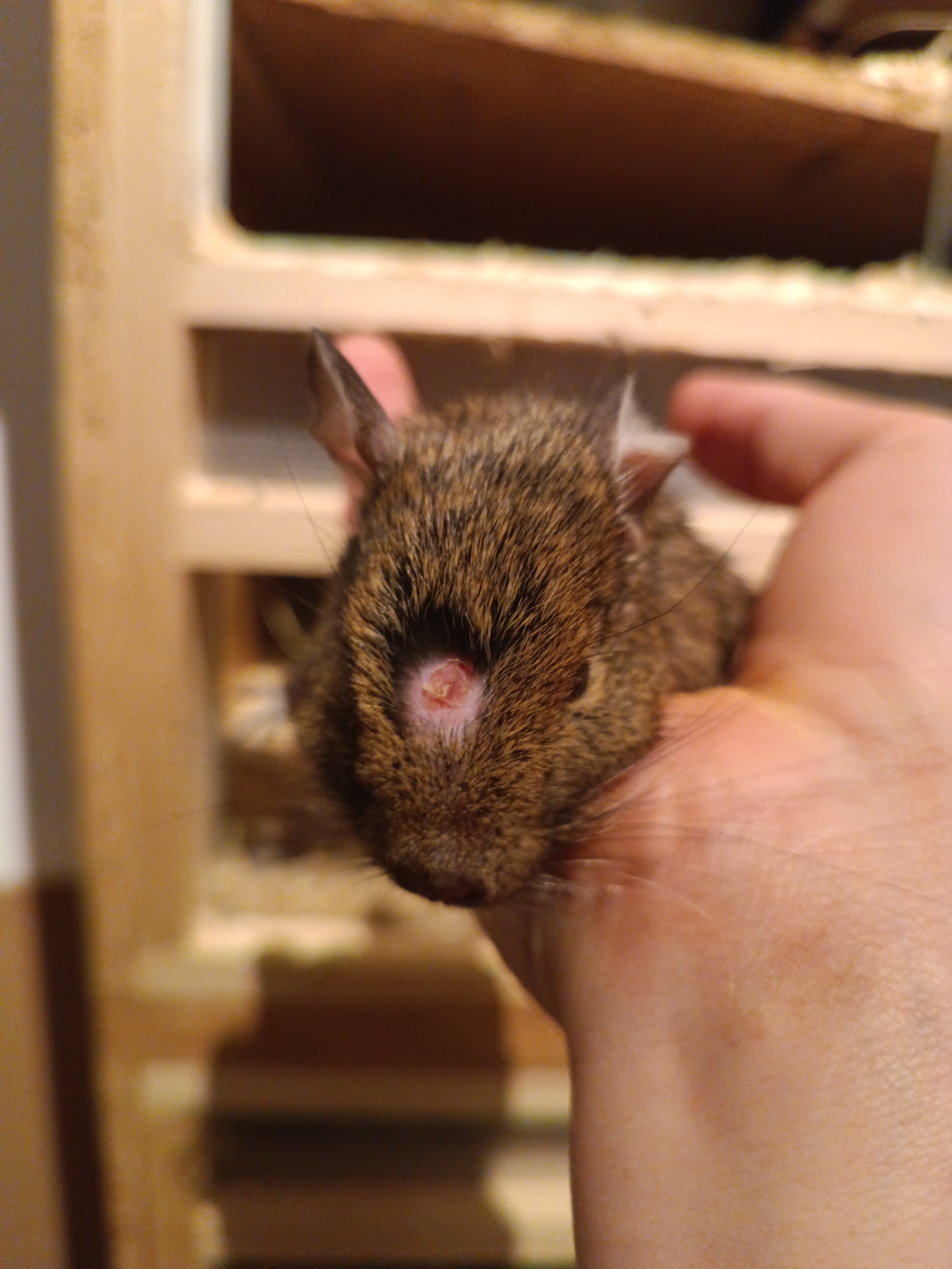 seit ca. drei Tagen hat einer unserer drei Degus (Lara) einen ursprünglich leichten Fellverlust über der Schnauze, welcher sich offenbar zu einem Ausschlag entwickelt hat. Leider bin ich mir nicht ganz sicher, was sie da an der Stirn hat. Sie kommt auch immer direkt an die Käfigscheibe, wenn sie meine Anwesenheit bemerkt. Vielleicht sucht sie ja nach Hilfe?