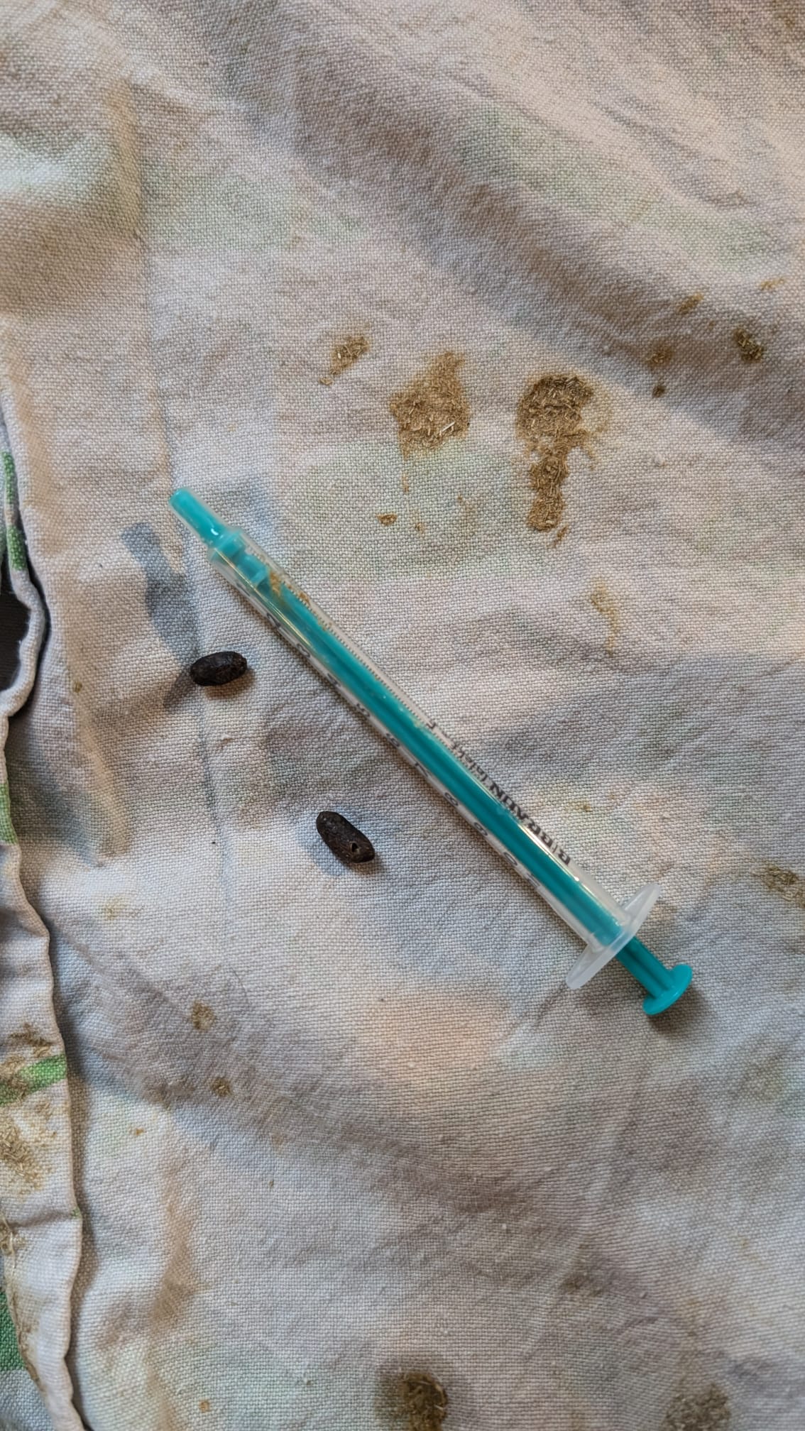 Also weiter... Brei mit Schmerzmittel über Spritze. Na gut.